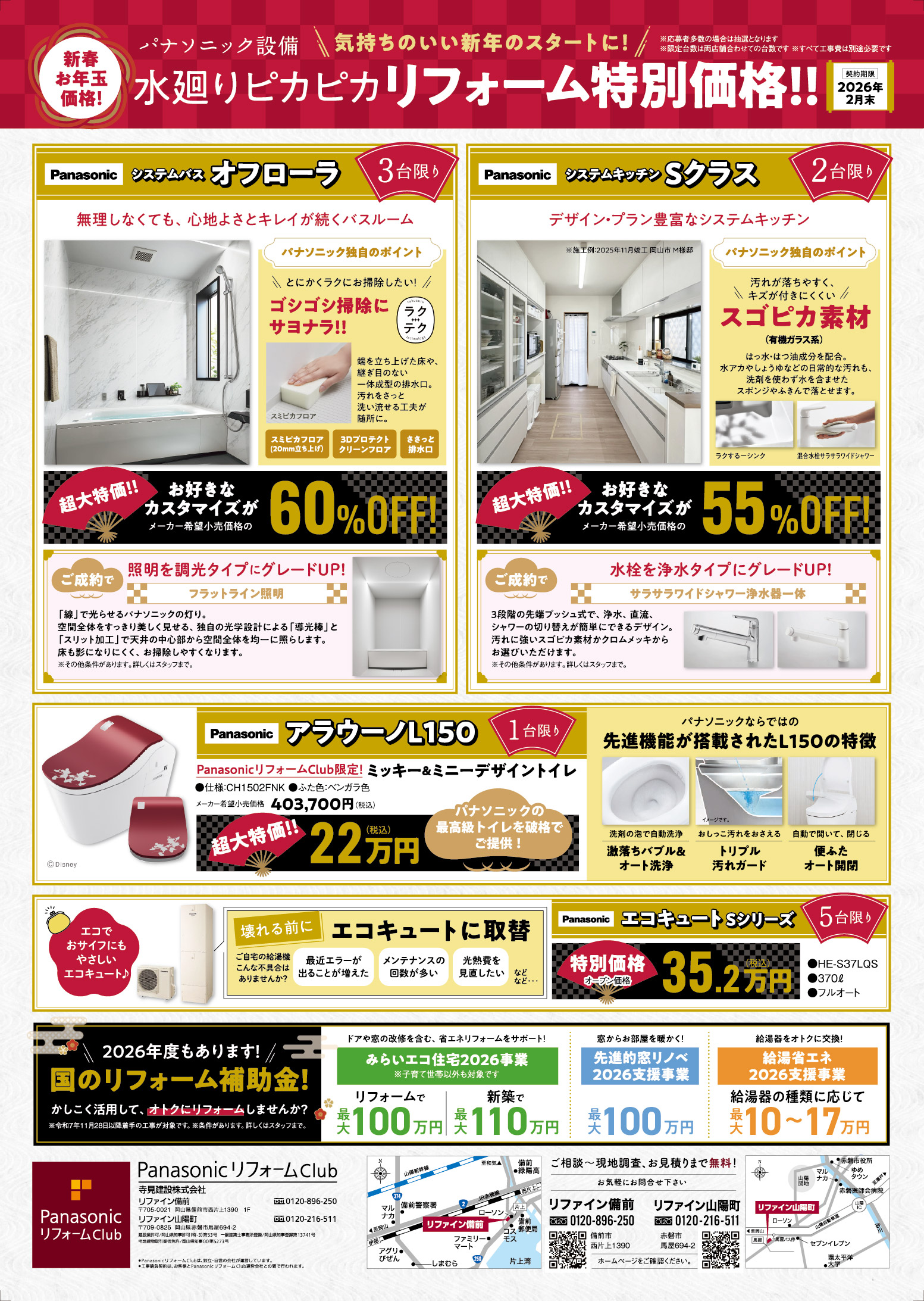 新年最初の、パナソニックの水廻り商品の大特価企画となっています!