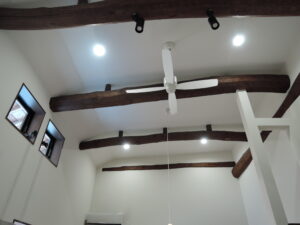 高窓からの光と風、シーリングファンの優しい気流が心地よく、エアコンをつけなくても省エネで快適な空間が得られると好評です。